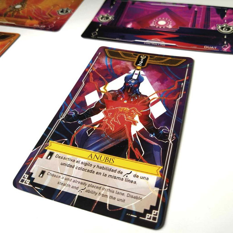 En este juego Horus y Seth se baten a duelo en tres locaciones, el inframundo, el mundo de los vivos y el barco solar. Los jugadores encarnaran a cada dios y asignaran sus cartas dividiendolas entre las tres locaciones, utilizando habilidades, jugando cartas sigilosas bocabajo y tratando de ganar cada locación con la menor cantidad posible de cartas.