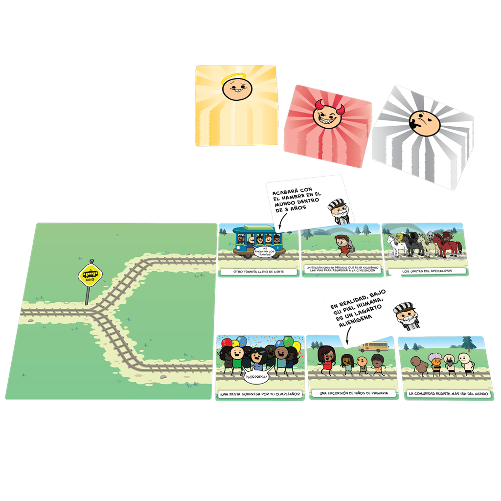 Juega en el papel de un conductor de un tranvía sin frenos que debe elegir la vía a la que dirigirse aplastando a todo el que se cruce en su camino. Mientras tanto, el resto de tus amigos se dividen en dos equipos tratando de convencerte para que no te dirijas a su vía.